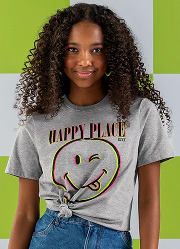 Rezzato - T-Shirt Happy Place Feminino Cinza