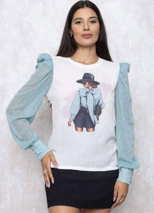 Limone - T-Shirt Limone Estampado Manga Princesa Longa Azul