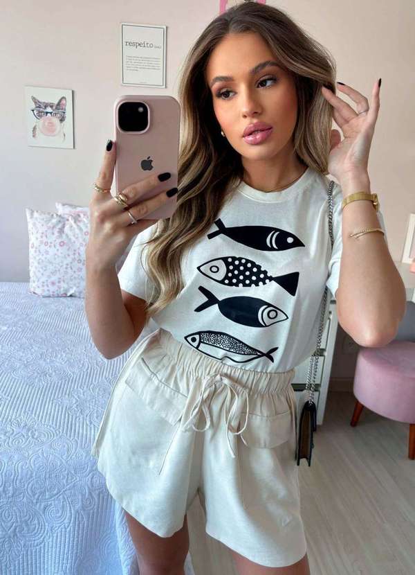 Cianitas - T-Shirt Off Peixes Bege