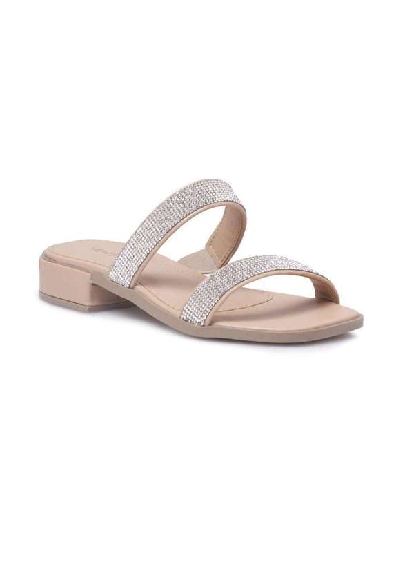 Via Miss - Tamanco Feminino Salto Medio Tiras Strass Confortavel Leve Nude