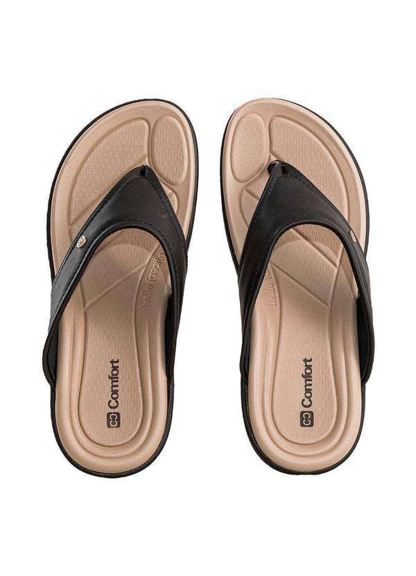 Comfort - Tamanco Feminino Tira Entre Dedos Anabela Comfort Preto