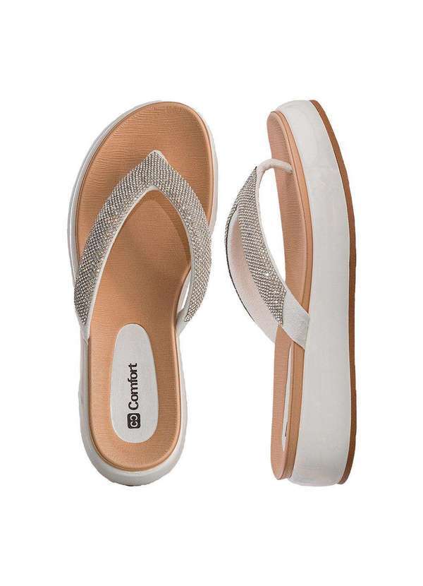 Comfort - Tamanco Feminino Tira Entre Dedos Strass Comfort Cristal
