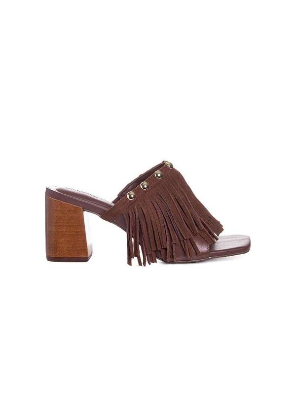 Loucos e Santos - Tamanco Loucos e Santos Tiras Franja Couro Cacau Marrom