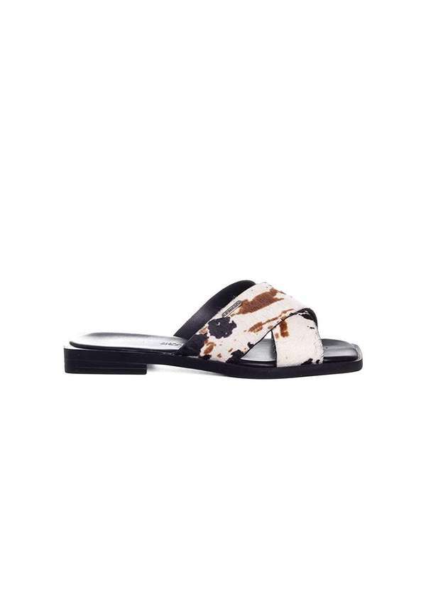 Bottero - Tamanco Rasteira Bottero Animal Print Couro Preto/Branco Preto