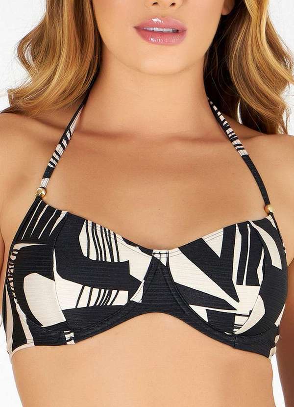 Características: Top Meia Taça com Alça Decorada Estampado Top com arco Sem bojo e recorte Recorte anatômico Alça e base em viés de lycra Pode amarrar de forma, normal, frente única ou cruzada Modela e eleva os seios Ajusta-se muito bem a seios grandes Alças e base de amarrar facilitando o ajuste a diferentes larguras de tórax Efeito firmador, mais sustentação para seios flácidos e/ou caídos Composição: Tecido: 86% Poliamida e 14% Elastano Forro: 91% Poliamida e 09% Elastano