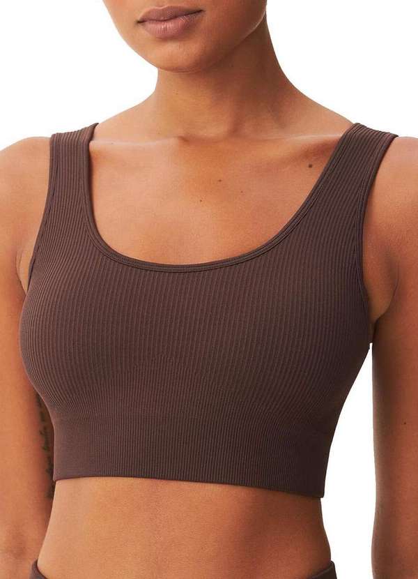 Características: Top Esportivo Feminino Possui textura canelada Top tem a elasticidade na medida certa para os seus movimentos durante os treinos Garante a sua segurança com uma alta cobertura e média suporte Seu tecido de poliamida tem o conforto ideal com toque macio e modelagem sem costura Garantindo mais liberdade no movimento, além do bojo removível Possui modelagem justa Alças largas Decote redondo Sem costura lateral Composição: 95% Poliamida e 05% Elastano