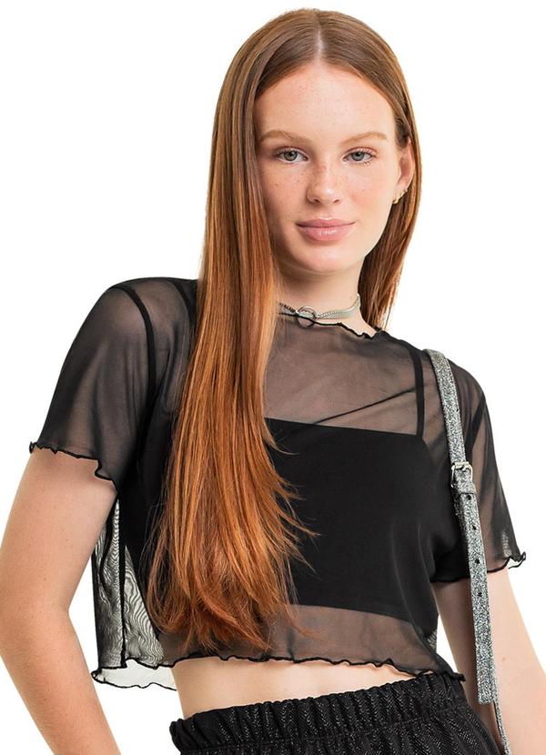 Gloss - Top Juvenil com Sobreposição Preto