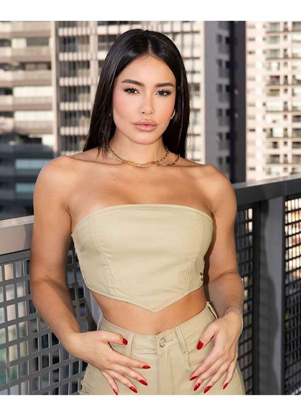 Consciência - Top Material Sintetico Feminino com Lastex Bege