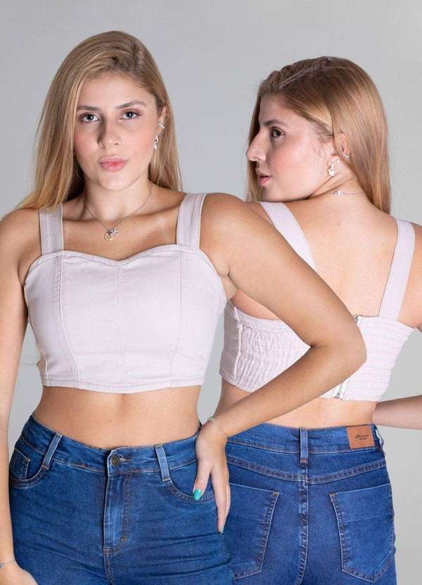 Top feminino confeccionado em sarja.O produto possui modelagem cropped com comprimento em torno da altura da cinturaPossui fechamento posterior por zíperAs alças são finas e o decote é retoTecido: SarjaCor: BegeComposição: 73% Algodão 24% Poliéster 3% Elastano