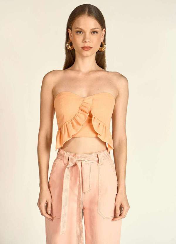 Zinco - Top Zinco Cropped Tomara que Caia com Babados Laranja Laranja