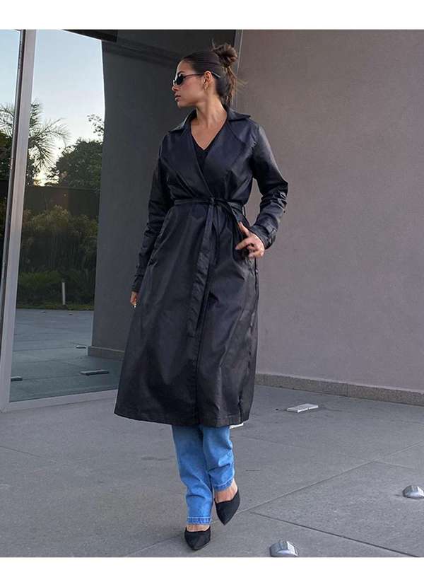 Consciência - Trench Coat Material Sintetico Resinado Feminino Preto