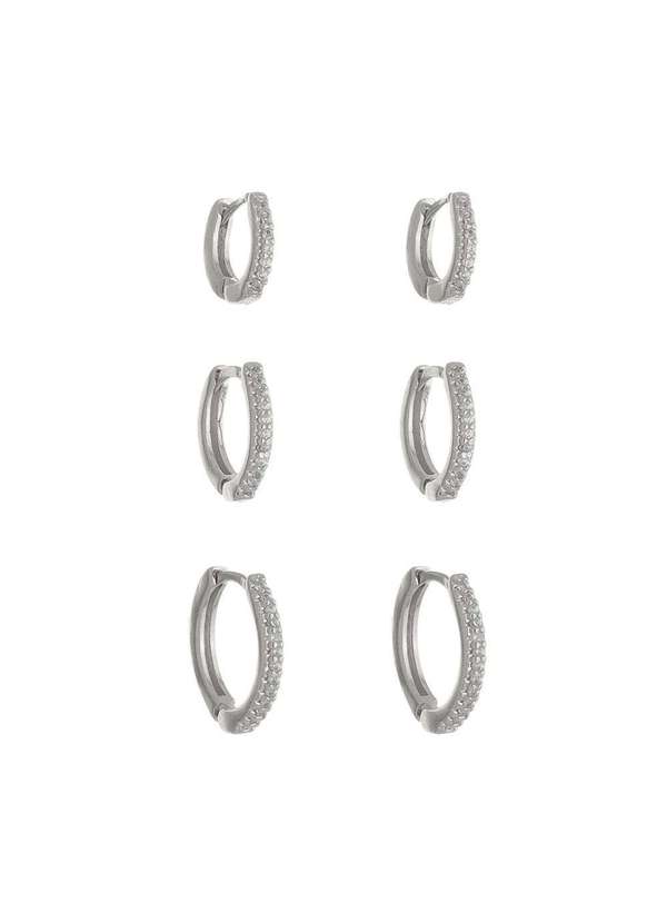 Piuka - Trio de Brincos Argolinha Zirconia Folheado em Rodio Branco Prata
