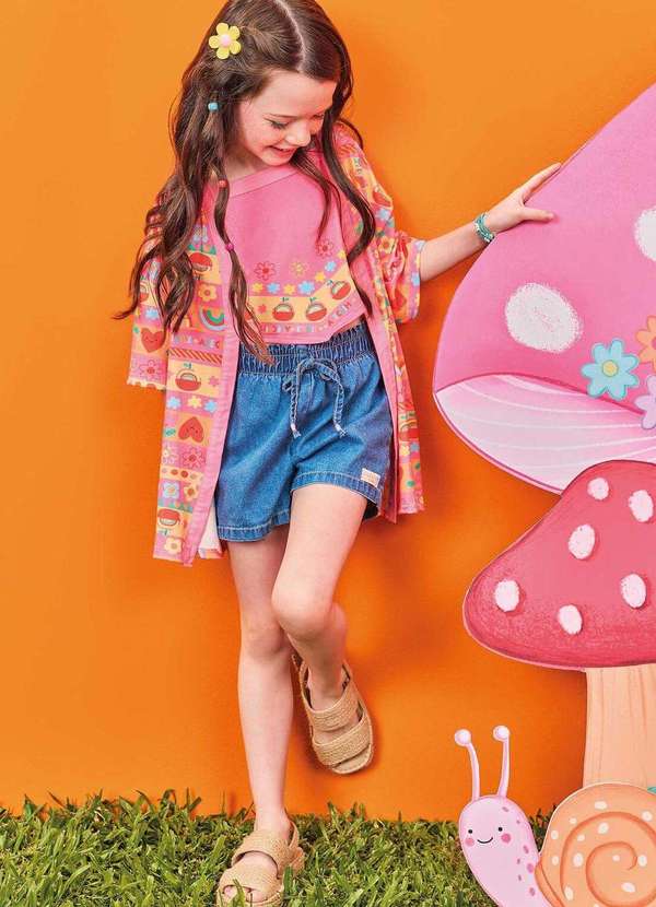 Kukiê - Trio Kimono e Top e Shorts Jeans Liz Rosa Kukiê Rosa