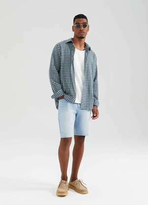 Uma ideia de produção despojada e autêntica é combinar a bermuda masculina com peças diferentes e moderninhas, como um sapatênis e uma camiseta estampada. Também é interessante apostar em sobreposições com camisas com jaquetas jeans, dando novos ares ao look casual.