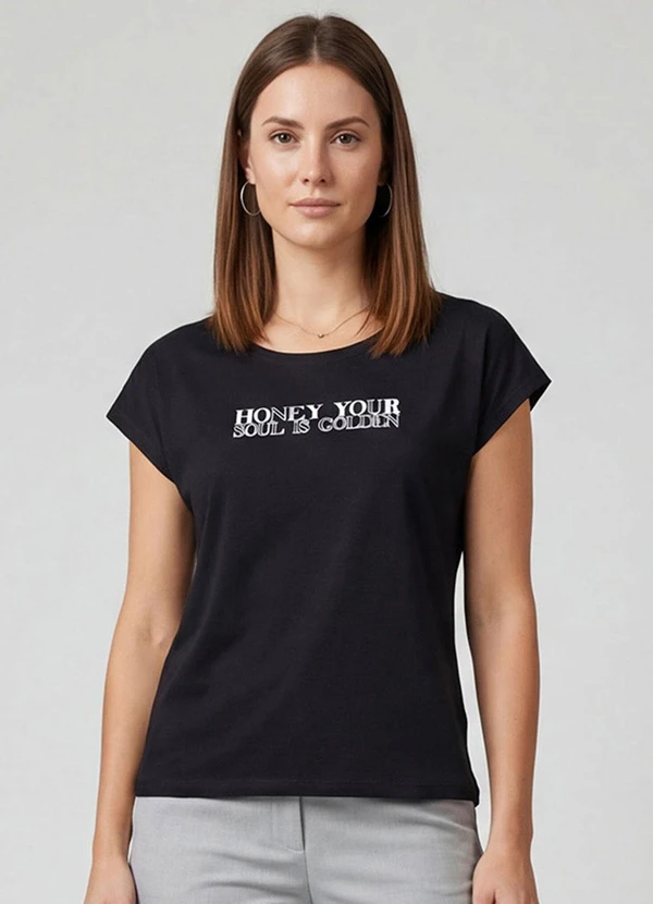 Infinita Cor - Blusa Feminina Manga Curta Estampada Preto