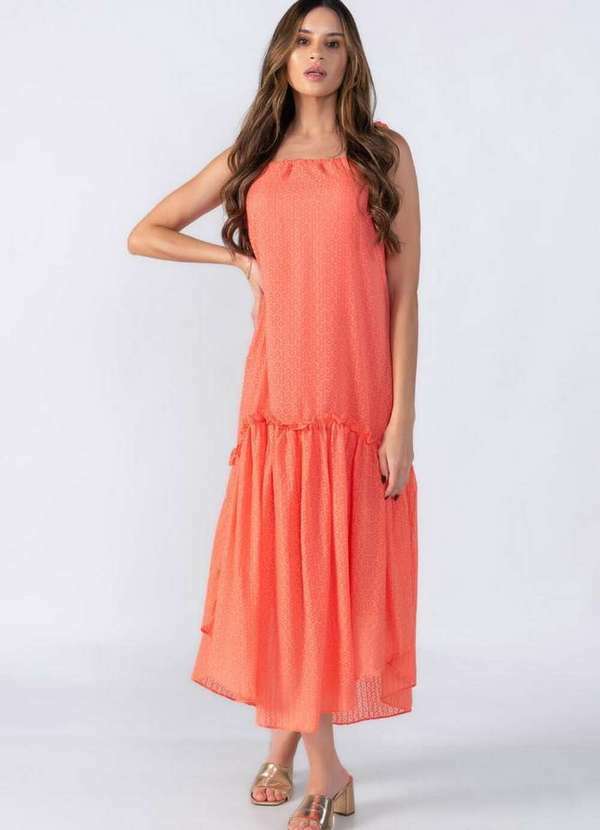 Lamis - Vestido Amplo Alongado com Babado Salmao