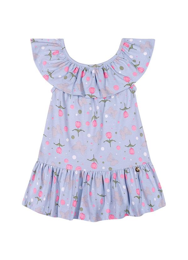 Alenice - Vestido Babado com Borboletas Menina Azul