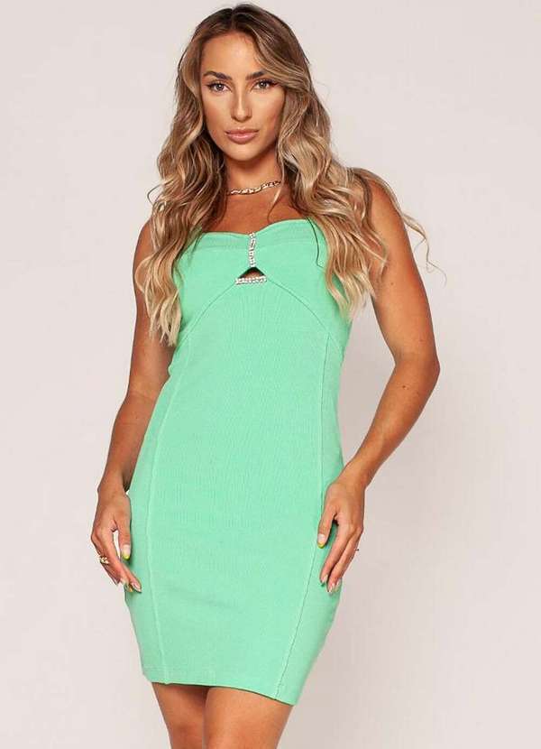 Lamis - Vestido Bandagem Curto Detalhe em Pedraria Verde