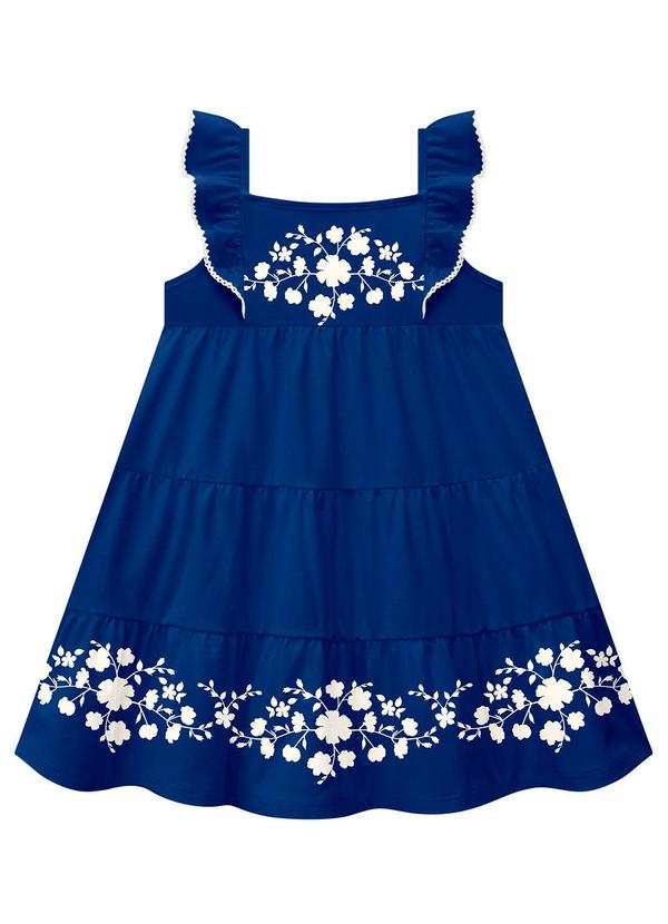 Milon - Vestido Bebê Menina com Estampa de Flores Azul
