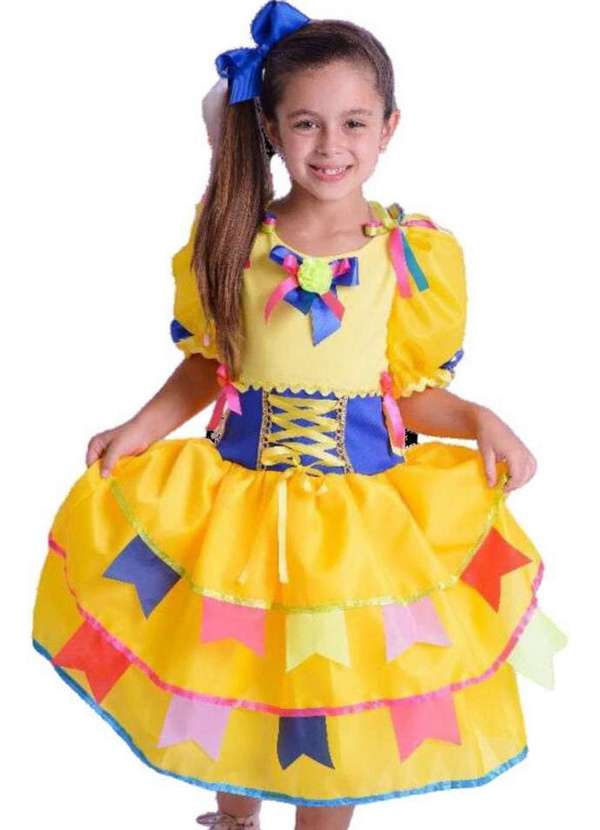 Muvilê - Vestido Caipira Amarelo Bandeira Infantil Muvilê Estampado