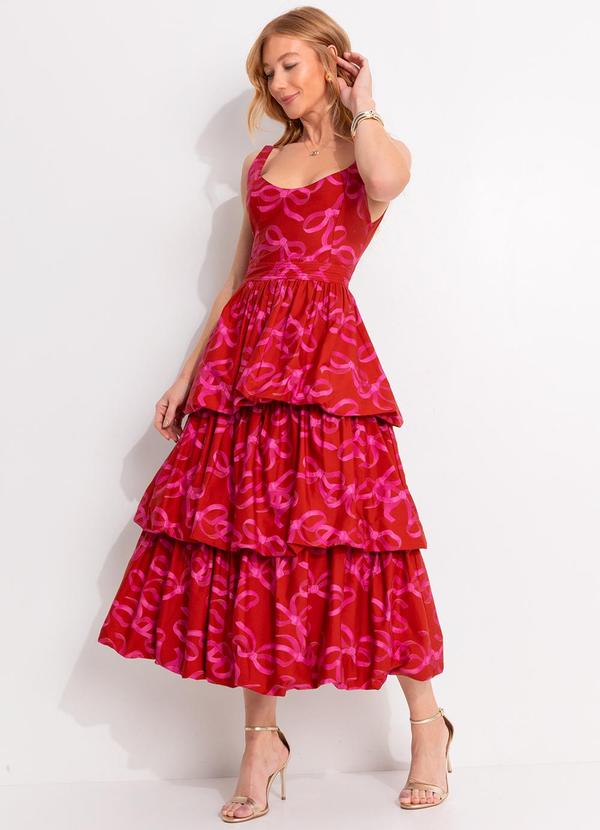 Farm - Vestido Camadas Balonê Laços Vermelho