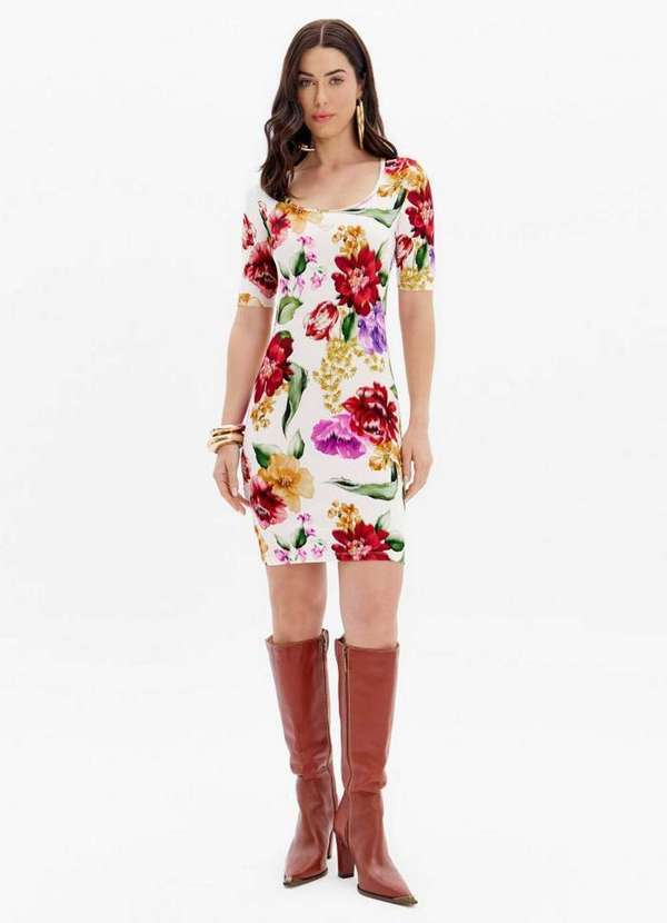 Lança Perfume - Vestido Canelado Curto Justo Estampado A2557