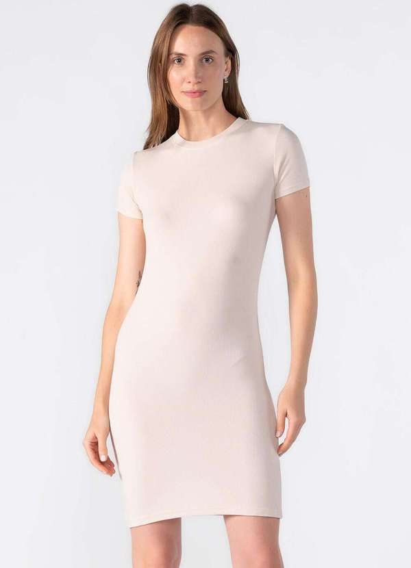 Lamis - Vestido Canelado Manga Curta Bege