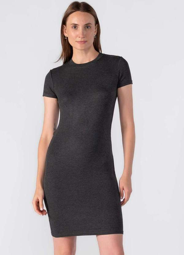 Lamis - Vestido Canelado Manga Curta Cinza