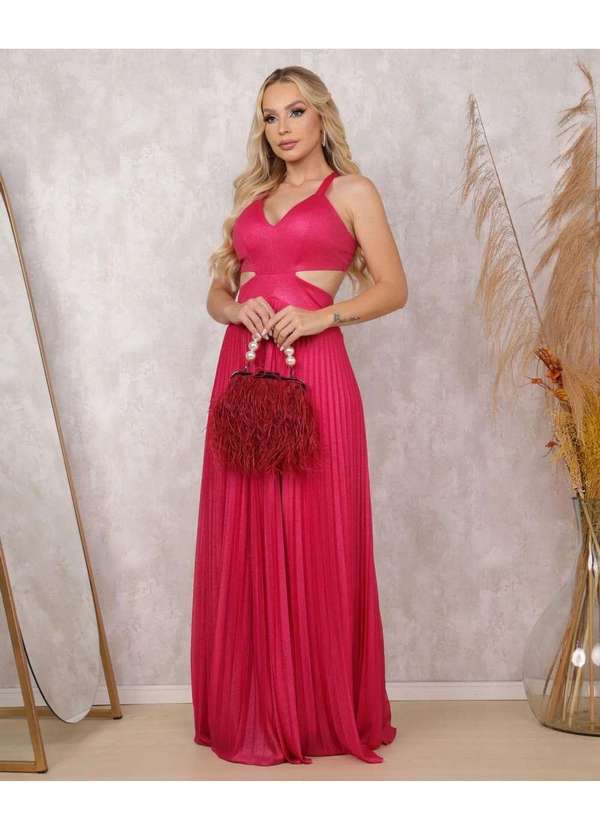Cappuccino - Vestido Cappuccino Longo Plissado Pink Rosa