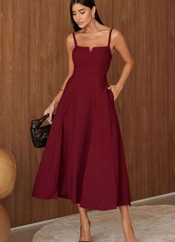 Miss Misses - Vestido Carol Decote V com Alcas Vermelho