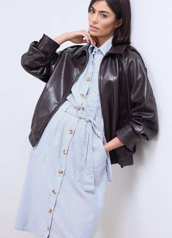 Laccord - Vestido Chemise com Bolsos Listrado Azul