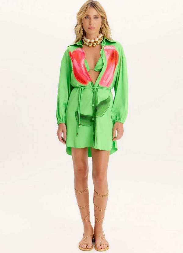 Amarante do Brasil - Vestido Chemise Manga Longa com Top Amarante Verde