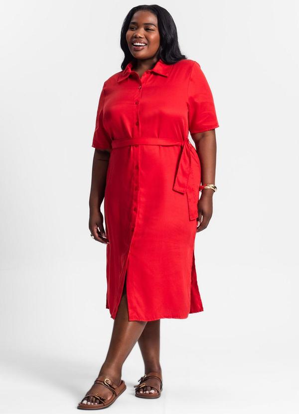 Secret Glam - Vestido Chemise Midi Plus Size Vermelho