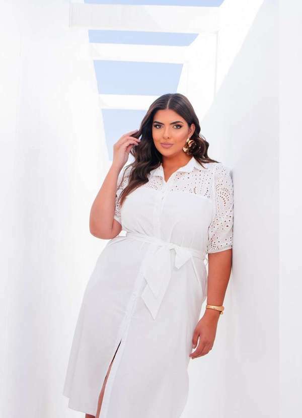 2. Ana Maya Curves - Vestido Chemise Plus Size com Detalhes em Renda Branco