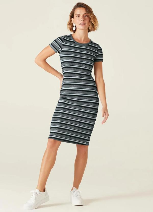 Malwee - Vestido Cinza Listrado Canelado