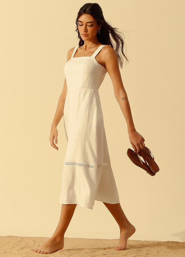 Principessa - Vestido com Alça Midi em Viscose Off White Samanta