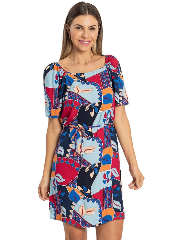 Rovitex - Vestido com Estampa Viscose Creponada Vermelho