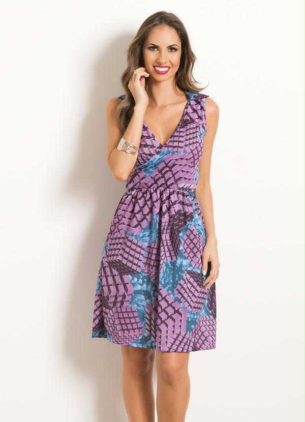 Outlet - Vestido com Gola Geométrico Decote Transpassado