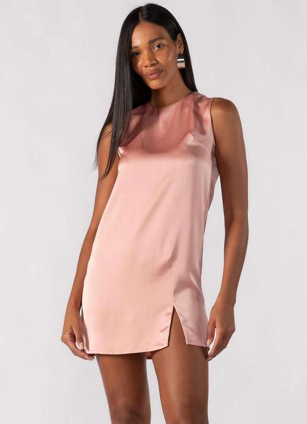 Vestido curto acetinado com fenda Dica: Usar com salto ou sandália Composição: 100% poliéster Modelo usa: Tamanho P - Medidas 1,80 de altura |65kg.