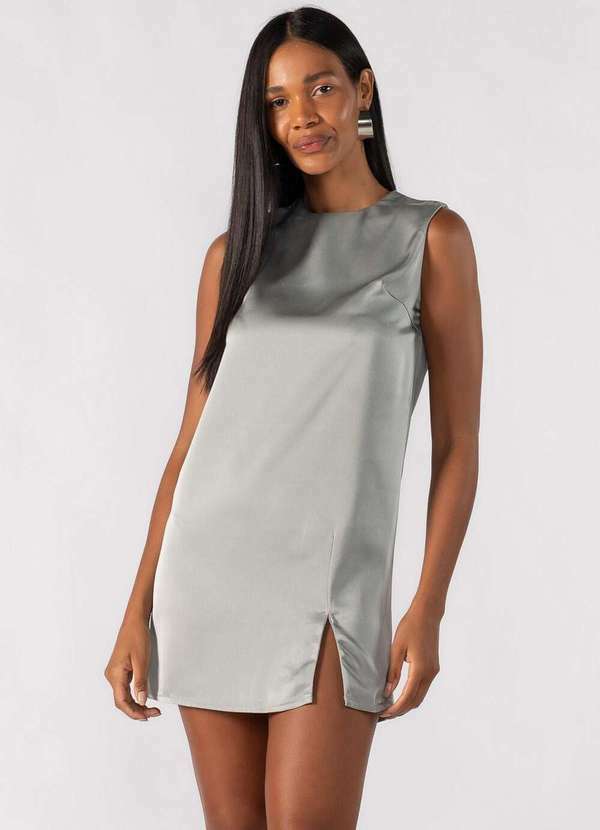 Vestido curto acetinado com fenda Dica: Usar com salto ou sandália Composição: 100% poliéster Modelo usa: Tamanho P - Medidas 1,80 de altura |65kg.