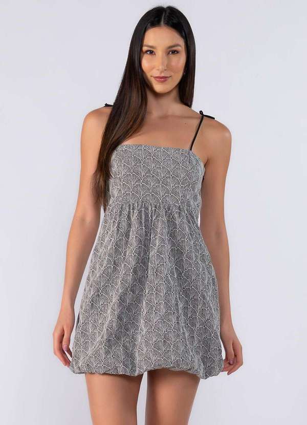 Vestido curto balone com amarração nas alças Dica: Usar com saltos ou sandálias Composição:100%algodão |Forro:100%poliester Modelo usa: Tamanho P - Medidas 1,75 de altura | Peso: 60k