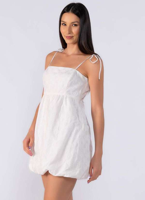 Vestido curto balone com amarração nas alças Dica: Usar com saltos ou sandálias Composição:100%algodão |Forro:100%poliester Modelo usa: Tamanho P - Medidas 1,75 de altura | Peso: 60k