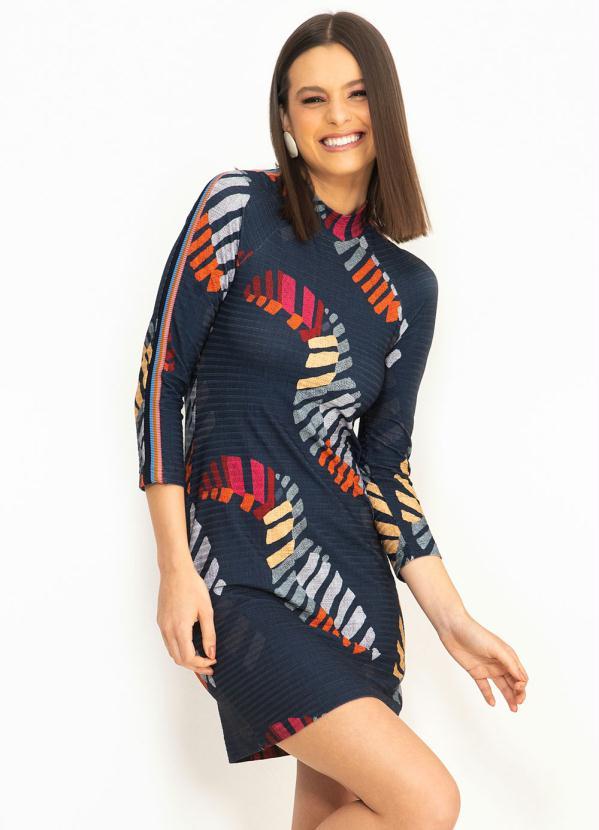 Farm - Vestido Curto Canelado Tucano de Listra Azul