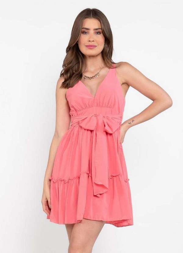 Lamis - Vestido Curto com Babados e Faixa Embutida Rosa