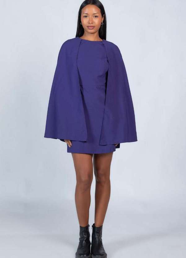 Lamis - Vestido Curto com Capa Roxo