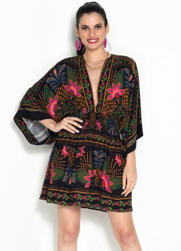 Farm - Vestido Curto de Viscose Mandala Tropical Preto