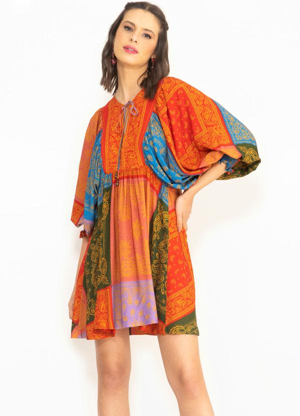 Farm - Vestido Curto de Viscose Sonho de Bandana Vermelho