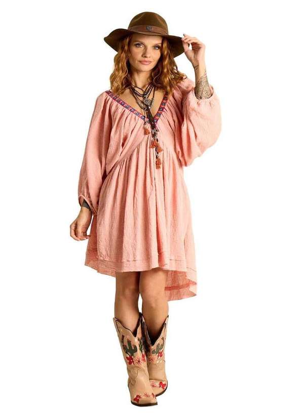 Yacamim - Vestido Curto Decote V Franzido Rosé Yacamim E19 Rose
