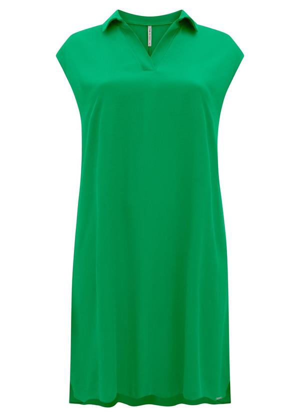 Lunender Mais Mulher - Vestido Curto Decote V Gola Camisa Viscose Verde
