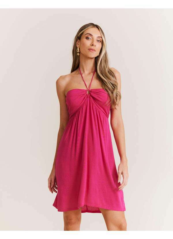 Zinzane - Vestido Curto Detalhe no Busto - Pink Rosa